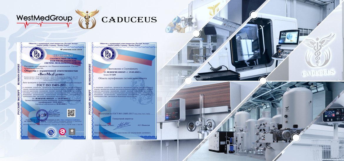 Таким образом, система менеджмента качества «ВестМедГрупп», касающаяся разработки, производства медицинских изделий для респираторной терапии, приборов для мониторинга физиологических показателей, аппаратов ИВЛ, медицинских консолей, контрольных запорных устройств, диоптриметров, синоптофоров с аксессуарами, интубационных ларингоскопов, хирургических светильников, была официально признана соответствующей международным стандартам. На основании экспертизы и оценки соответствия требованиям стандарта компании «ВестМедГрупп» выдан сертификат № RUSEXP-RU-000529.